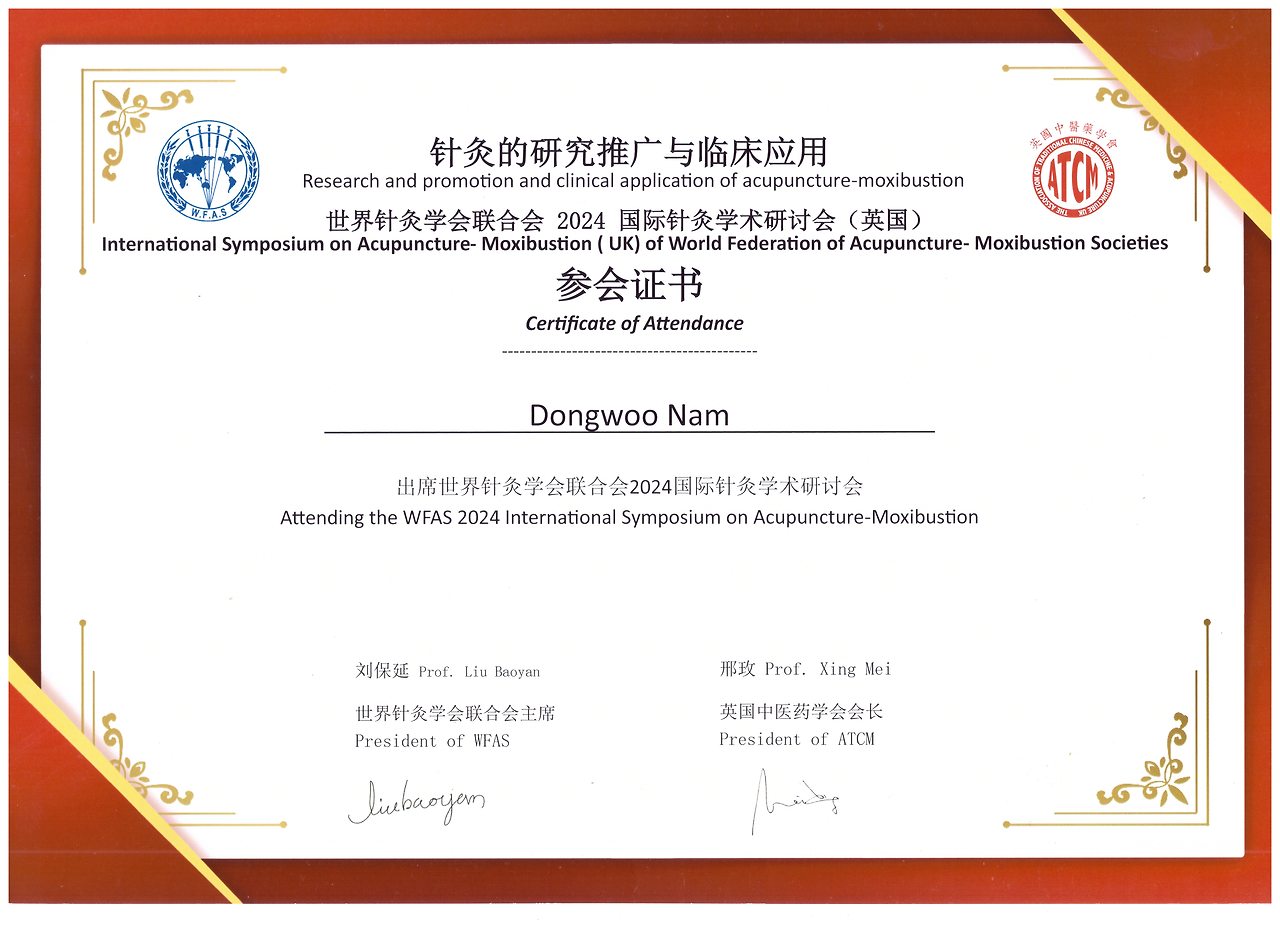 WFAS 세계 침구학회 참석증